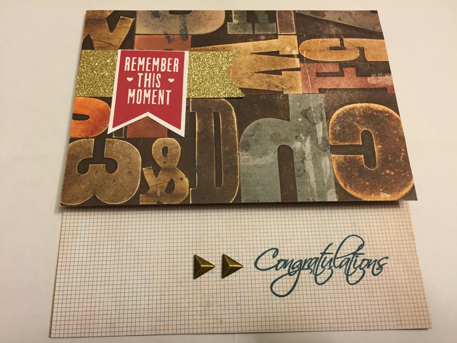I created these with my Scholastic scraps and some Kraft paper. The I used several stamp sets including: Pinwheel, For Every Occasion and January's Stamp of the Month, This Moment. I added a little bit of bling with Gold Glitter Paper and Triangle Studs